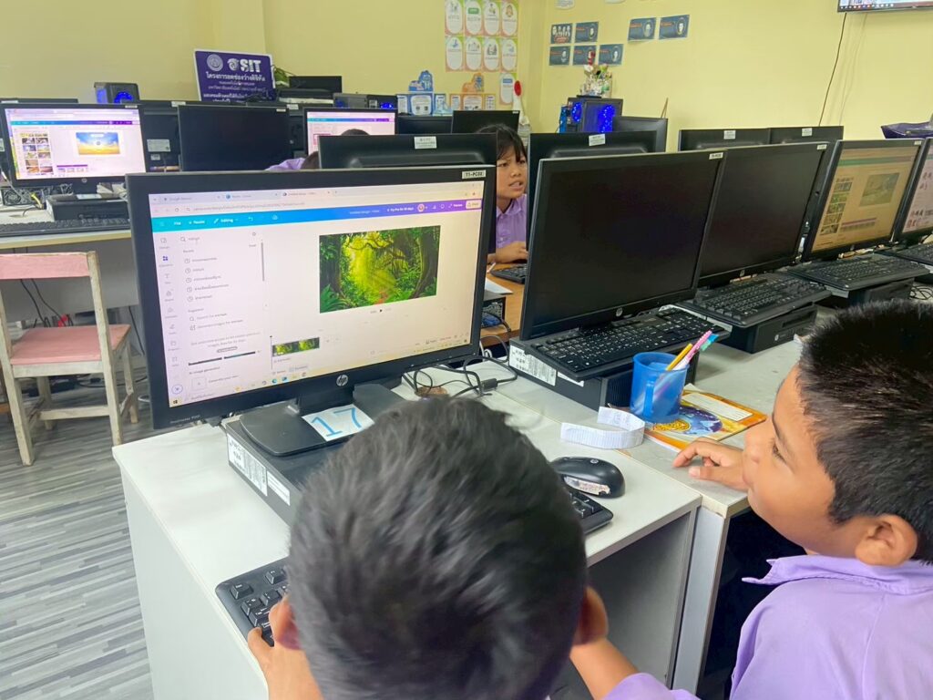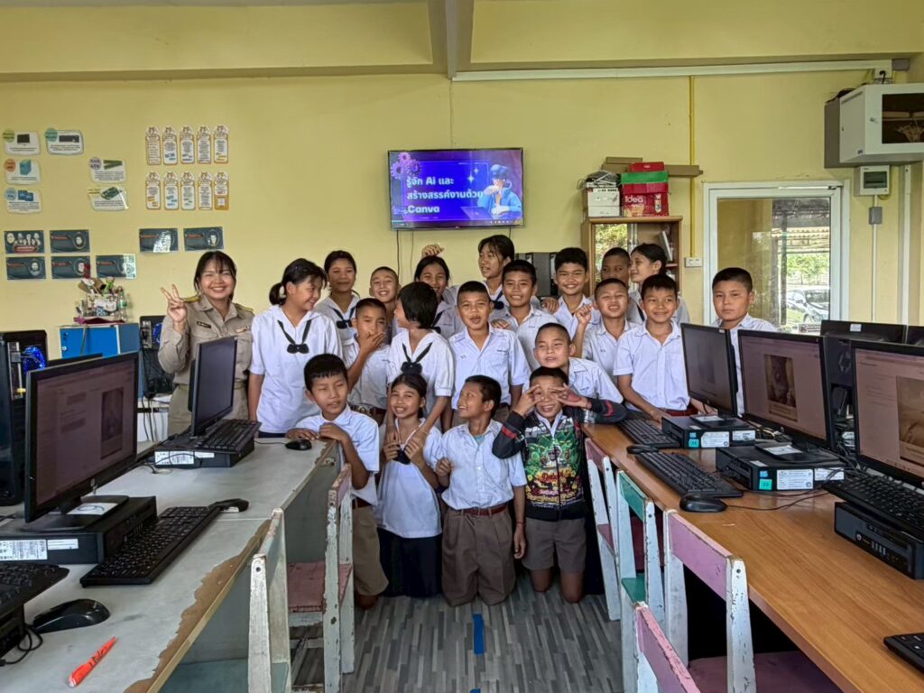 ภาพบรรยากาศการอบรมโครงการ รู้จัก Ai สร้างสรรค์งานด้วย Canva วันที่ 24 – 28 – 29 กันยายน 2568 เพื่อพัฒนาทักษะด้านคุญธรรมจริยธรรมโดยการใช้เทคโนโลยีและการใช้ปัญญาประดิษฐ์มาช่วยสร้างนิทานคุณธรรม ที่สื่อสารข้อคิดดีๆผ่านจินตนาการของจนเอง ในกิจกรรมครั้งนี้นักเรียนได้ฝึกการคิดเนื้อเรื่องที่มีคุณธรรม เช่นความซื่อสัตย์ การช่วยเหลือกัน ความรับผิดชอบ การใช้ Ai ออกแบบตัวละคร ฉาก และถ้อยคำประกอบนิทาน การทำงานร่วมกันเป็นกลุ่มเพื่อแลกเปลี่ยนความคิดเห็นและตรวจสอบความถูกต้องของข้อมูล